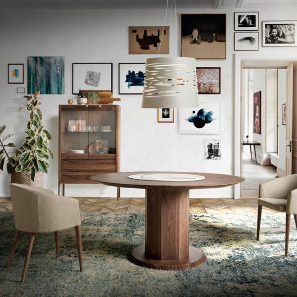 Otro detalle interesante de esta mesa llamada Civetta es el centro, donde tiene un centro giratorio de mármol cerámico blanco. Ideal para esos días en los que sirves un aperitivo directamente sobre la mesa y a girar cuando quieres picar de algo que te queda lejos, nada de tener que estar esperando a que te lo pasen.