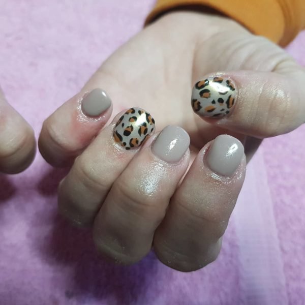 O podéis también decantaros por pintar vuestras uñas en color gris, que es de hecho uno de los tonos tendencia de la temporada y aplicar en una de ellas un bonito estampado leopardo para hacer que vuestra manicura resalte más.