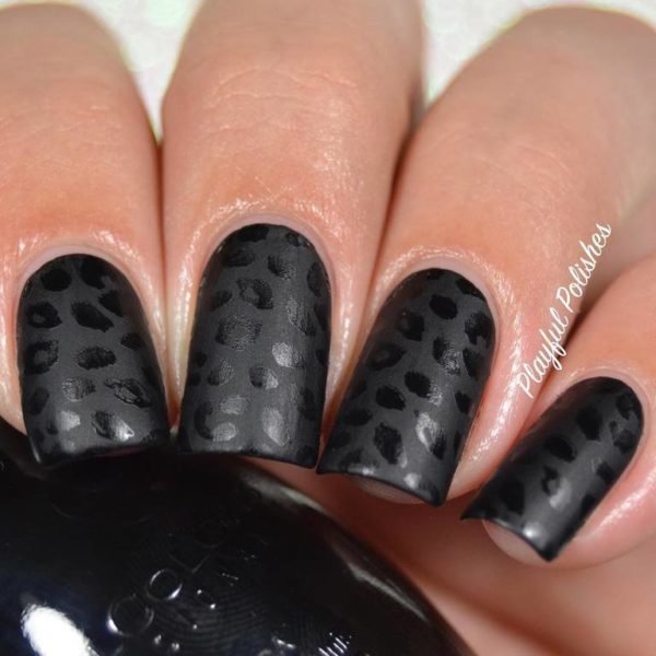 Si te gustan las uñas con un estampado animal print, pero no deseas que destaquen demasiado, siempre puedes elegir la opción de lucir unas uñas que tengan un acabado en mate, tal y como vemos en esta otra propuesta en la que el color negro es el protagonista.