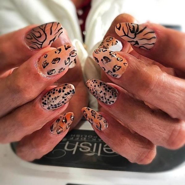 El estampado animal o «animal print» se resiste a pasar de moda y tal vez por ello, no solo lo podemos ver en la moda o en los bolsos, sino que también puede ser una buena opción cuando se trate de encontrar una manicura que marque tendencia. En este sentido, tenéis muchos diseños animal print que elegir, aunque decantaros por aquellos que son en tonos rojizos o anaranjados, como este que veis a continuación, será sin duda, una apuesta segura.
