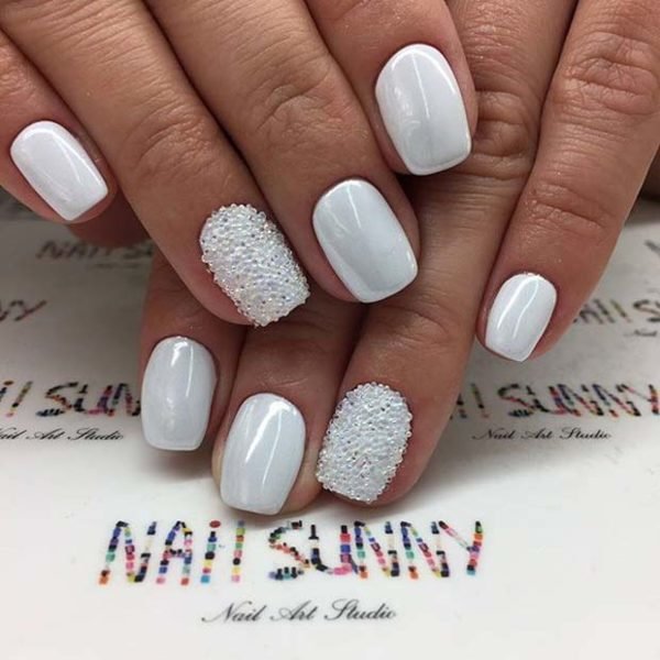 Uñas blancas | Diseños con piedras y brillantes