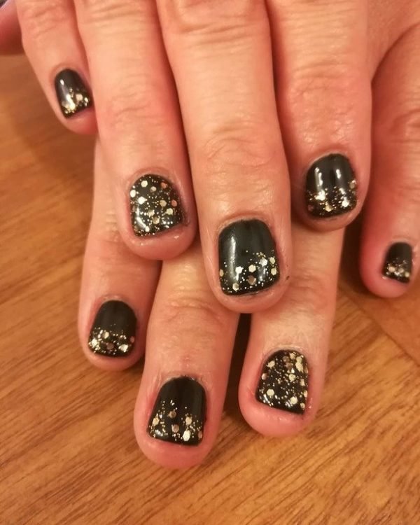 Y como no, puedes decantarte también por decorar tus uñas doradas con el diseño de las uñas de lunares de la que tenemos que decir que son tendencia. De este modo, puedes hacer algo similar a lo que veis a continuación, con unas uñas en negro, decoradas con puntos o lunares en dorado.