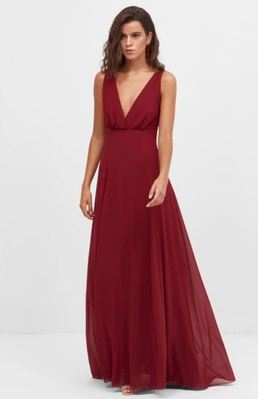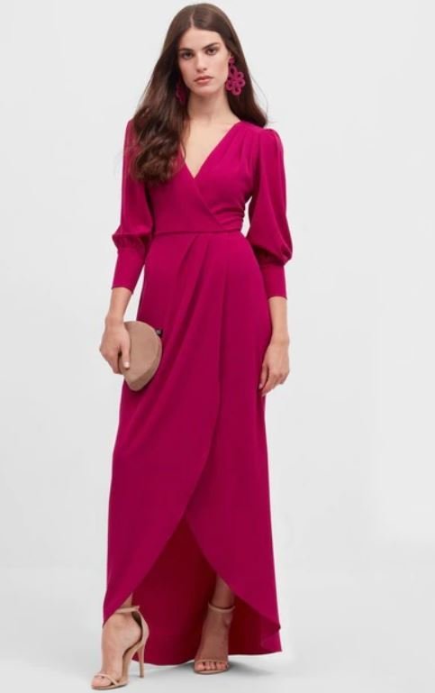 Si al evento al que tienes que acudir es un bautizo, también te traemos una serie de vestidos que pueden ser perfectos para la ocasión. El primero de todos ellos es este vestido de tono rosa oscuro, con medio escote y largo; perfecto para pasar un gran día.
