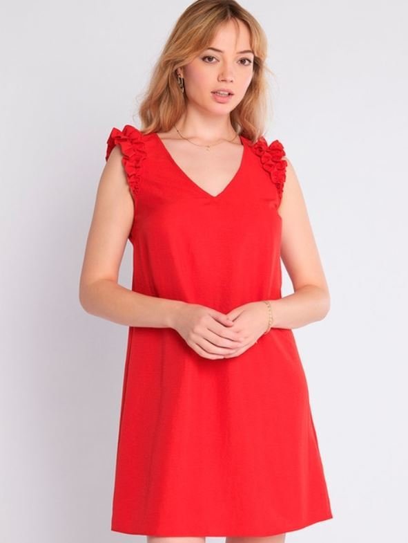 Si te gustan los colores cálidos, pero buscas algo mas sencillo; también tienes este vestido rojo que es perfecto por si hace demasiado calor en este día festivo.