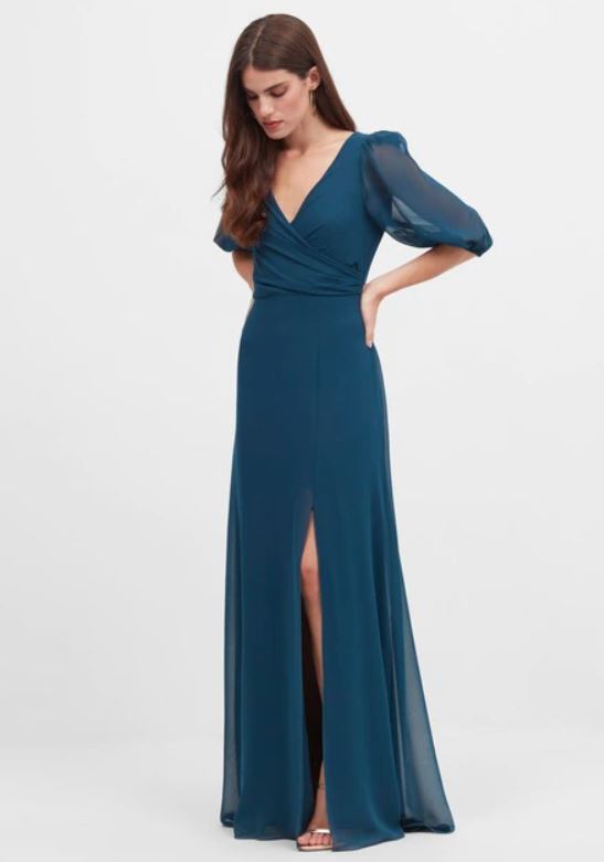 Si tienes preferencia por los tonos verdes o azules, con este vestido largo y abierto por la pierna, seguro que se adapta a lo que más te gusta.